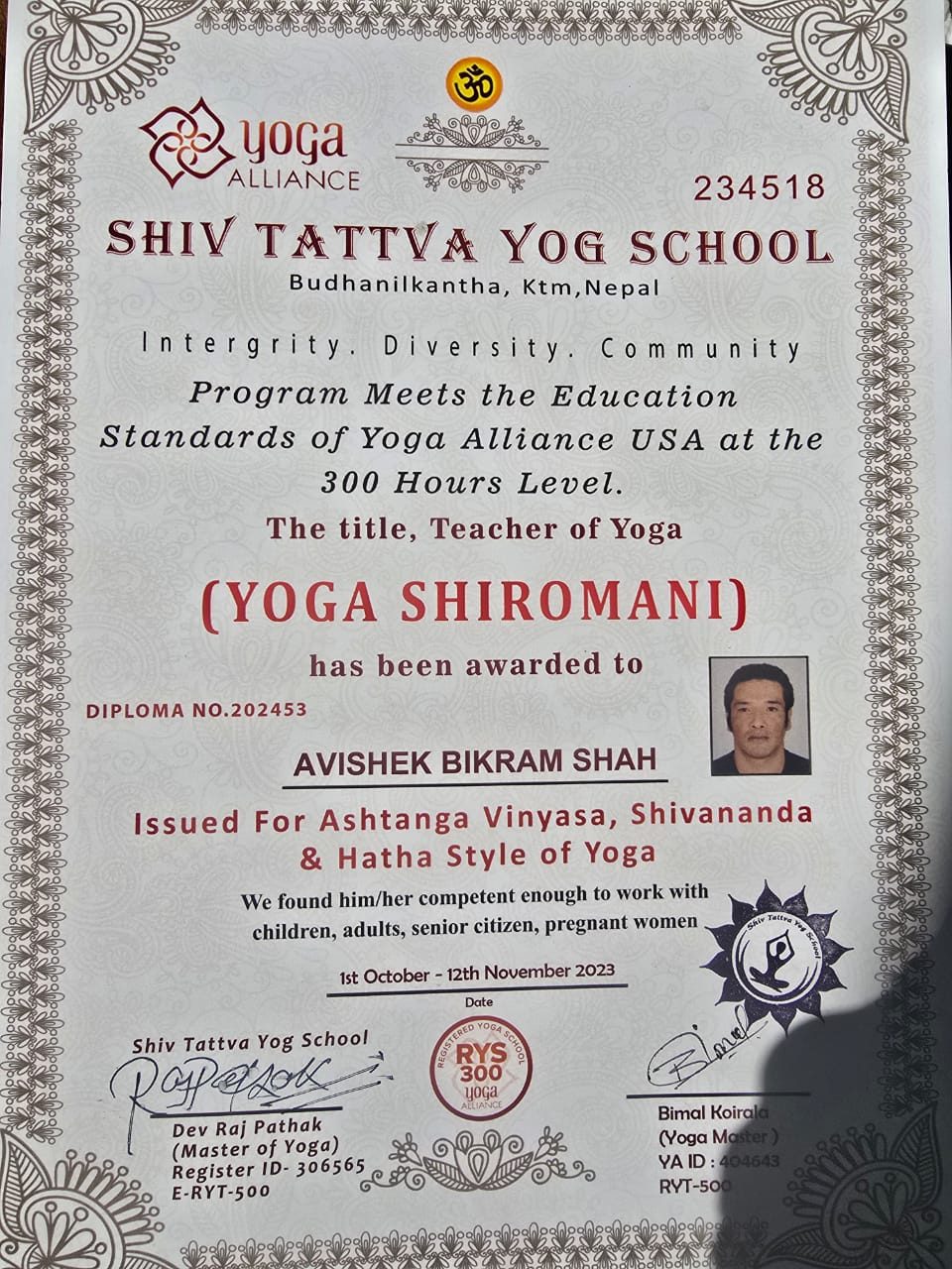 Avishek Bikram Shah is a dedicated yoga instructor who blends Iyengar’s steadiness with Ashtanga’s dynamic flow, offering classes that are both accessible and empowering.
